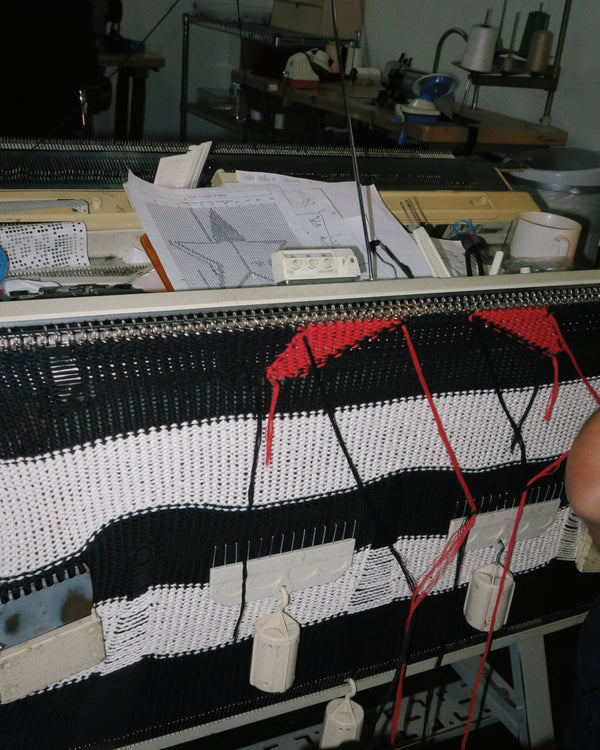 Welcome to SUSS, a women owned, mother/daugher operated knitwear brand. All Suss pieces are Swedish deigned and Los Angeles made. Our sweaters are hand loomed, hand embroidered and hand knit locally with longevity and the environment in mind. Suss places an emphasis on carefully developed textured knits with modern silhouettes.